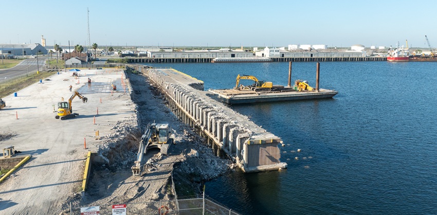 Demolition has begun on Cargo Dock 3 at the Port of Brownsville, kicking off a major reconstruction project to modernize the nearly 90-year-old facility. The upgraded dock will handle larger vessels and boost the port’s efficiency and capacity, supporting continued growth in international maritime trade. Photo courtesy of Port of Brownsville.